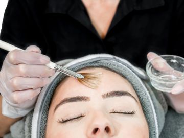 A facial resurfacing technique that uses a chemical solution to improve and smooth the texture of the facial skin by removing its damaged outer layers.